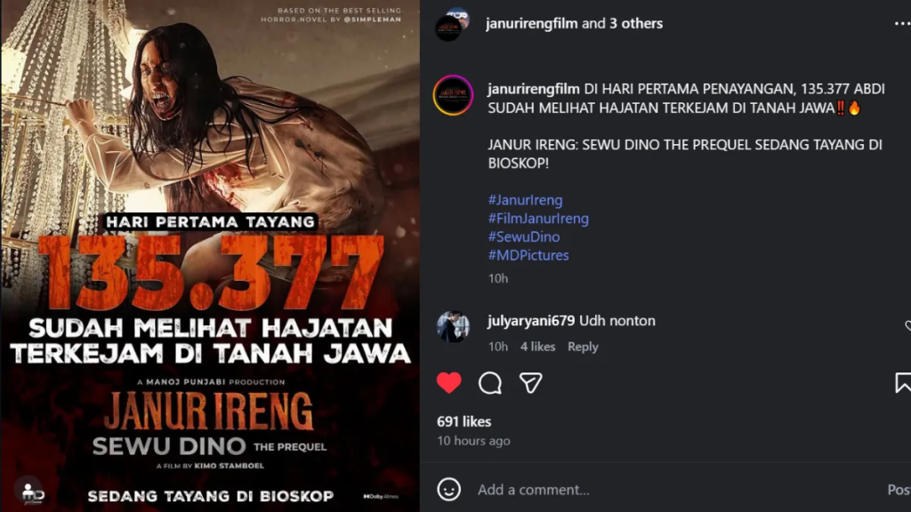 Keberhasilan ini menunjukkan tingginya minat penonton terhadap film horor lokal berkualitas.